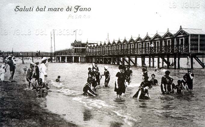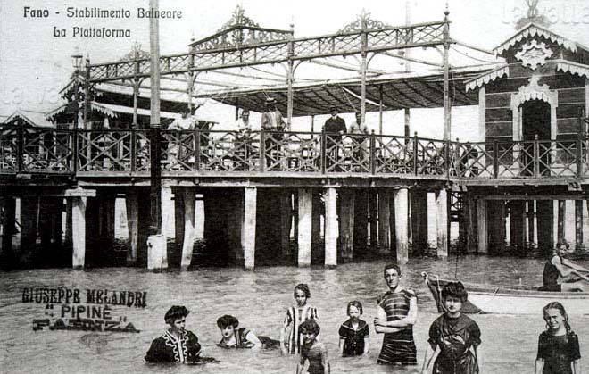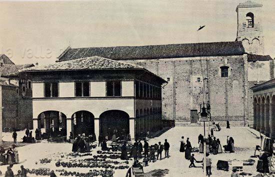 Piazza Andrea Costa a Fano, secondo decennio del XX secolo (da AMADUZZI, 1984). I portici sulla destra non sono stati ancora tamponati