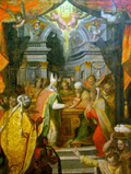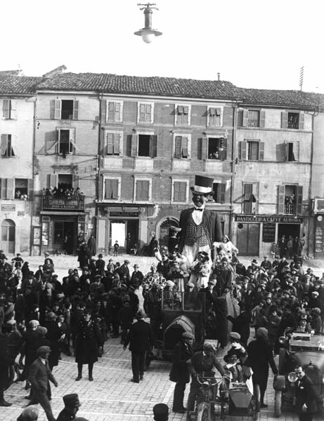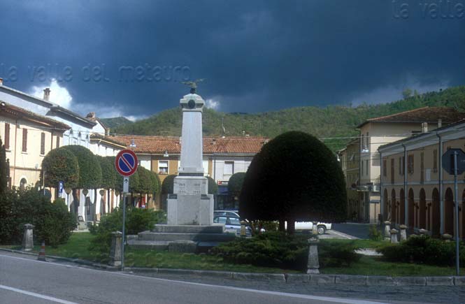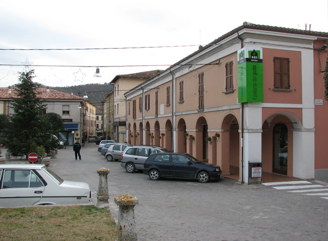 Piazza Umberto I con monumento a Papa Clemente XIV, Sant'Angelo in Vado, gennaio 2008