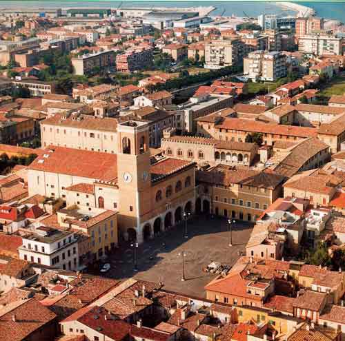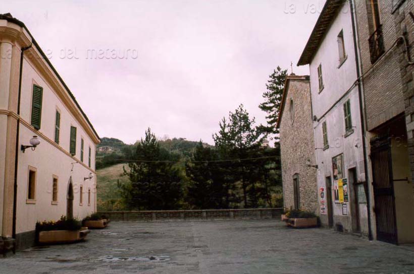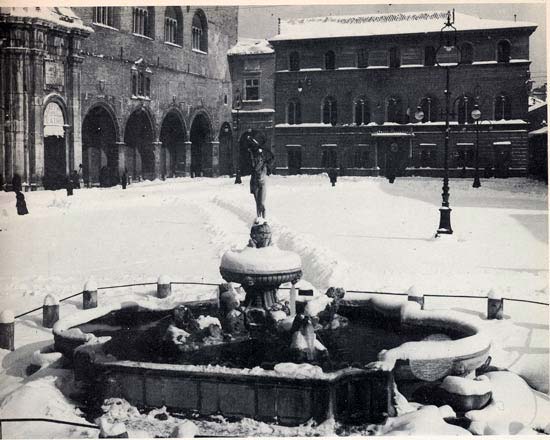 Piazza Mazzini a Fossombrone, già Piazza della Loggia, della Fontana e del Duomo (da: rivista Pesaro Urbino, a. V, n. 1 del 30-3-1985)