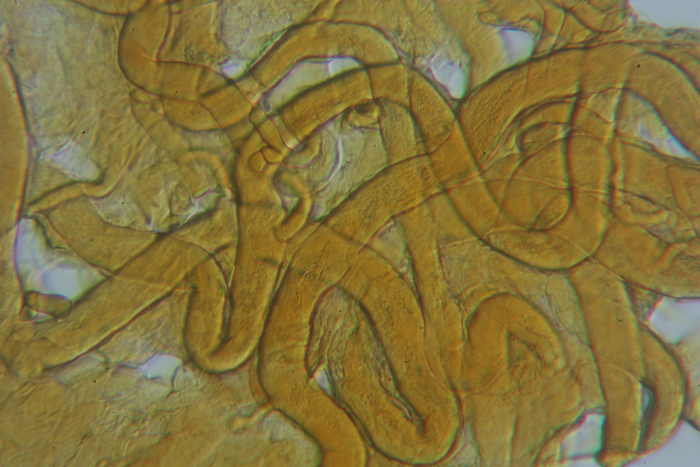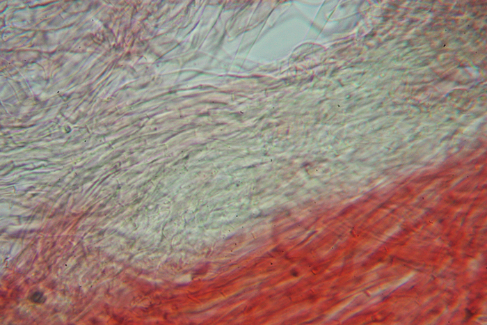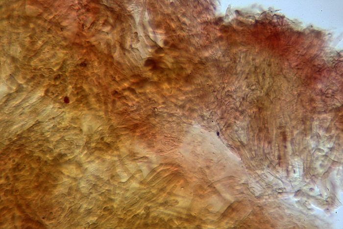 Pileipellis con ife immerse in gel giallastro di Cupophyllus colemannianus, Monte Grino, dicembre 2018