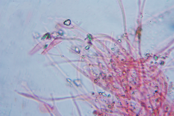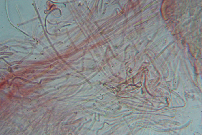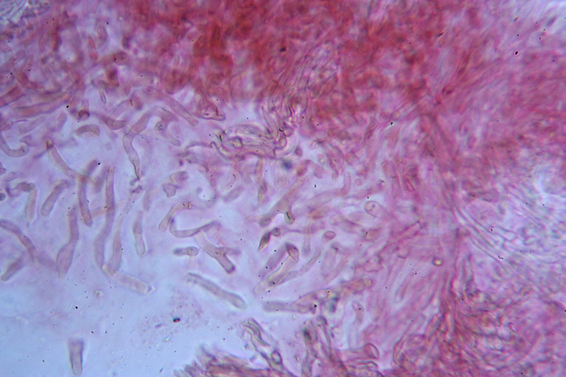 Pileipellis con ife cilindriche, piccole di Cupophyllus colemannianus, Monte Grino, dicembre 2018