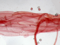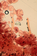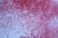Pileipellis con ife gelificate (parte esterna più chiara) di Gymnopus hariolorum, zona di Fontecorniale (Montefelcino), aprile 2012