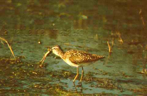 Piro-piro boschereccio che sta ingoiando una rana, Istria (Romania), luglio 1981