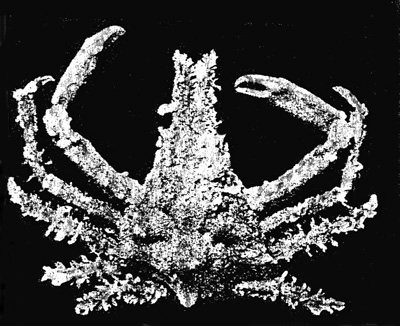 Pisa armata femmina di 39x29 mm (esempl. conservato), 36 miglia al largo di Fano, marzo 2008, coperta in parte da epibionti (foto C. Ciabotti)