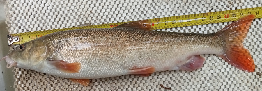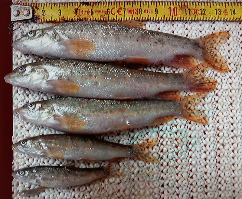 Barbo comune, T. Arzilla a Mombaroccio, giugno 2023 (foto A. De Paoli, M. Sanelli e S.O. Bai, da: DE PAOLI et al., 2023)