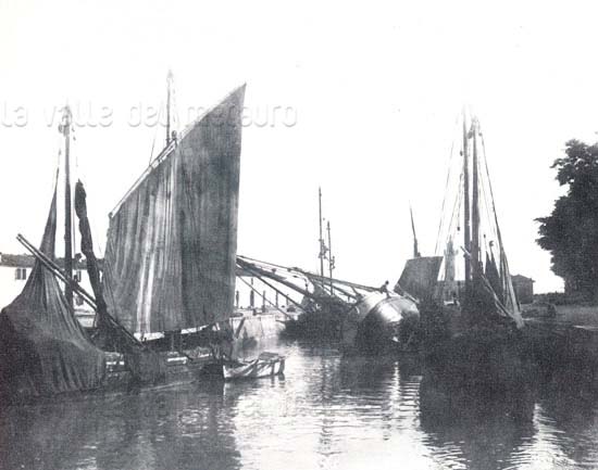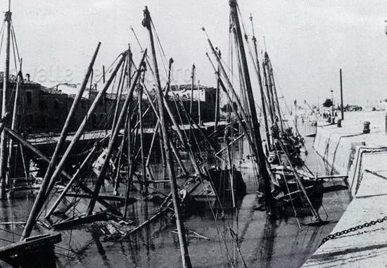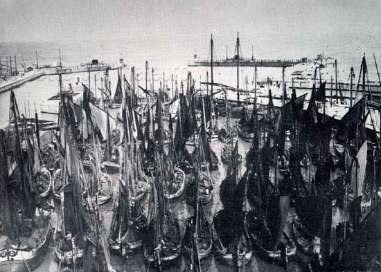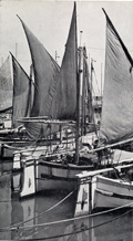 Barchetti al riparo nel bacino di stazionamento del Porto di Fano, anni 1920-1930 (da AMADUZZI, 1984)