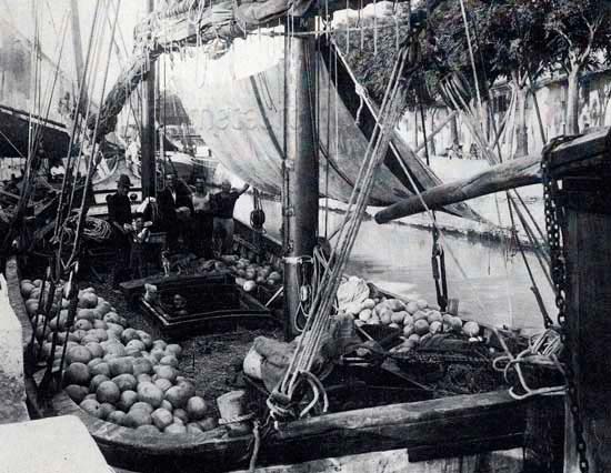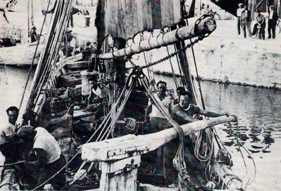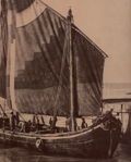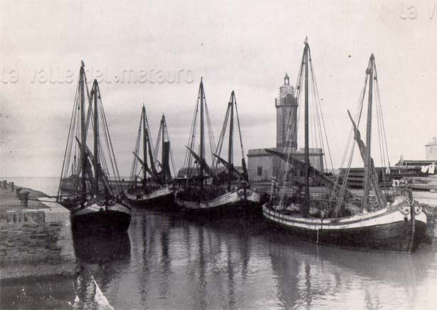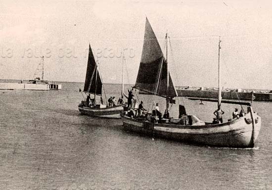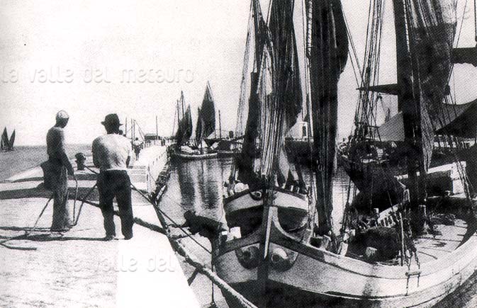Barchetto che entra nel porto di Fano, primi del 1900 (foto G. Baviera, Fototeca Biblioteca Federiciana di Fano)