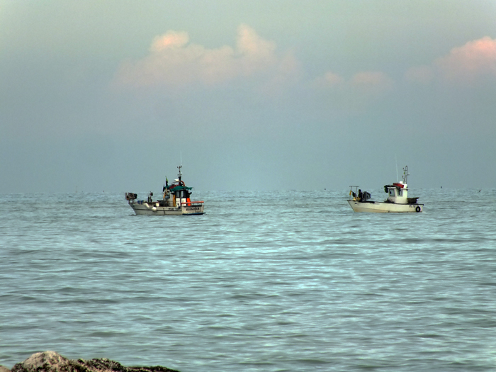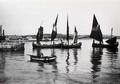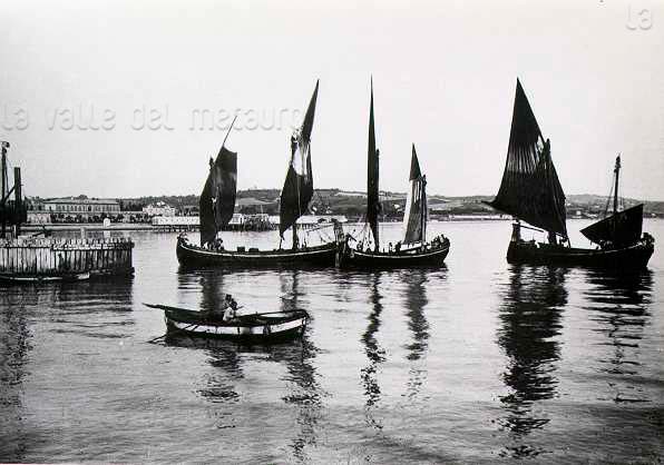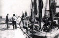 Barchetti all'imboccatura del Porto di Fano, primi del 1900. In primo piano un battello