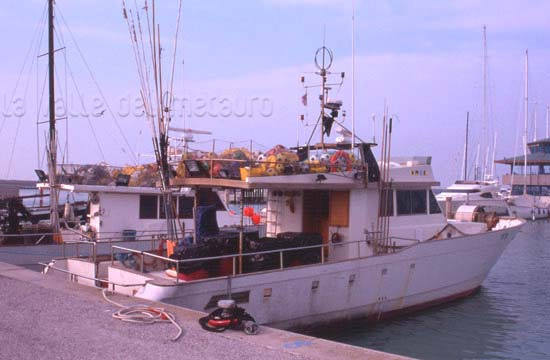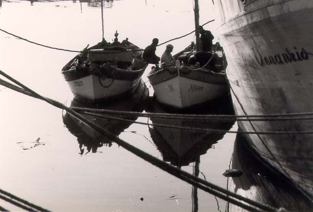 Barche nel porto di Fano. Le barche sono probabilmente due lampare; il peschereccio Venanzio che si intravede a destra non era fanese