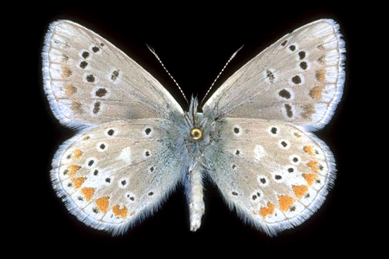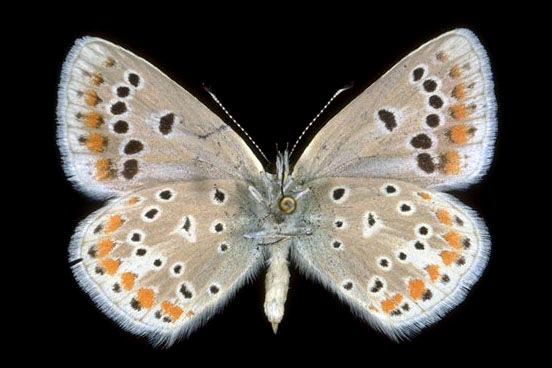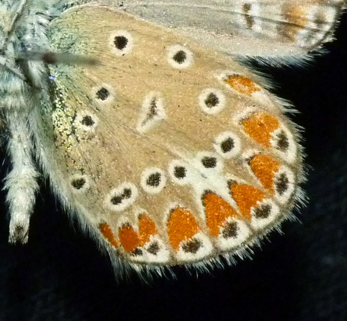 Polyommatus dorylas maschio (aa 16 mm), parte inferiore, M. Acuto (Gruppo del Catria), luglio 1993