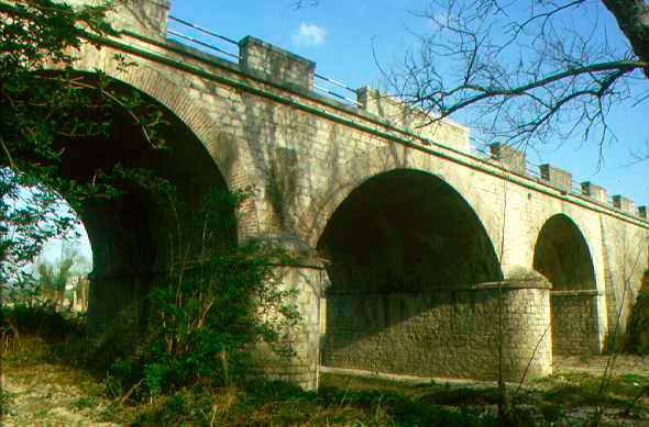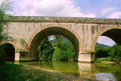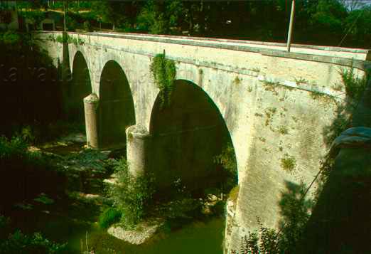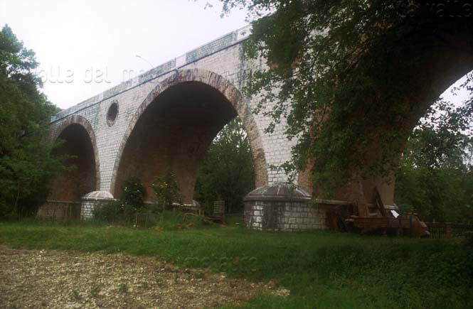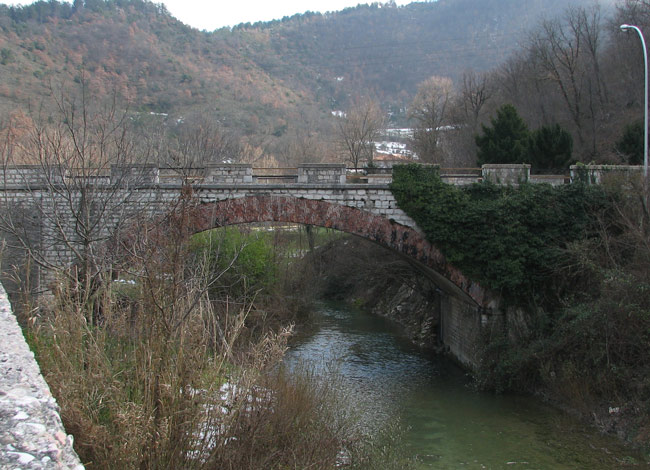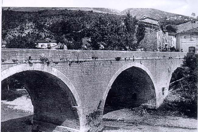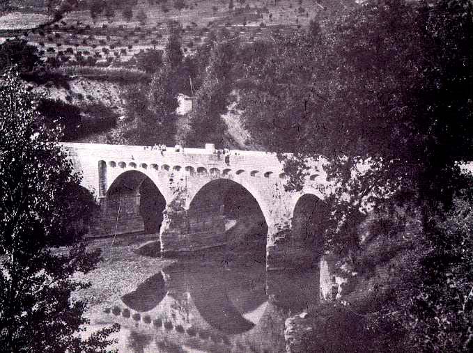 Ponte di Traiano (da VERNARECCI 1969). Il ponte prima della distruzione avvenuta nella seconda guerra mondiale