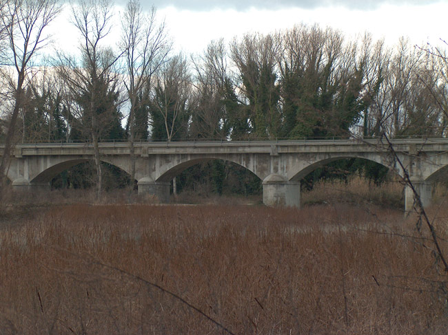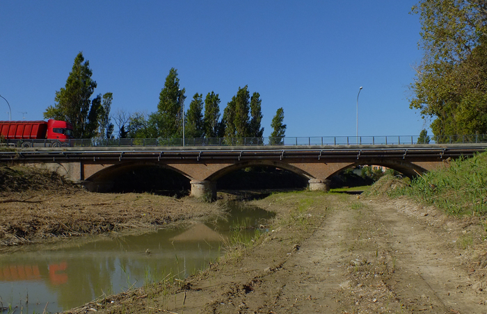 Ponte della SS. Adraiatica, luglio 2007. Sulla destra la pineta di Madonna Ponte e sulla sinistra lavori di consolidamento dell'argine