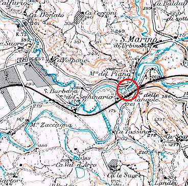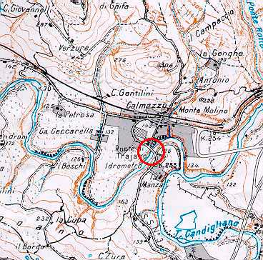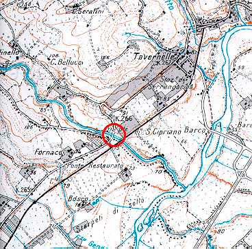 Ponte di S. Cipriano. Carta top. Reg.Marche 1:25.000 109 II (autorizz. Ufficio Cartografia e Inform. Territoriali Reg. Marche del 13-3-1999 e aut. IGM n. 4877 del 2-11-1998)