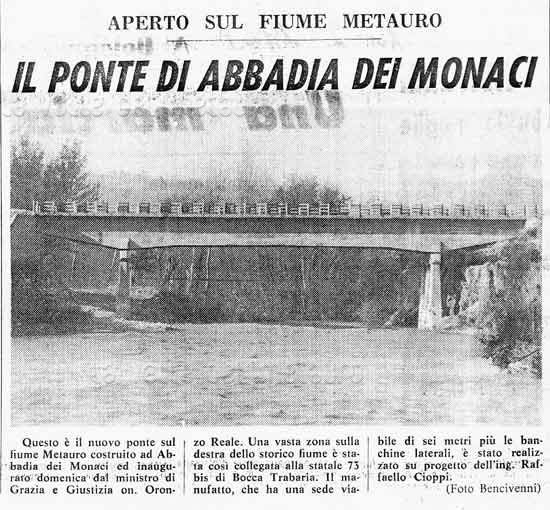 Ponte delle Piàngole. Carta top. Reg. Marche 1:25.000 109 III (autorizz. Ufficio Cartografia e Inform. Territoriali Reg. Marche del 13-3-1999 e aut. IGM n. 4877 del 2-11-1998)