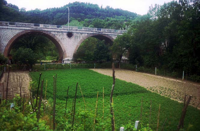 Ponte di S. Maria a Sant'Angelo in Vado, giugno 1996: muraglione ed edicola