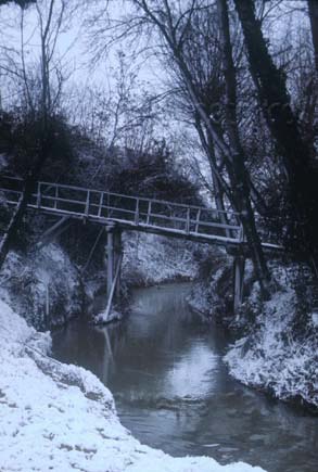 Ponte di legno lungo il T. Arzilla a 1 km dalla foce, maggio 1974, poi sostituito con uno in cemento
