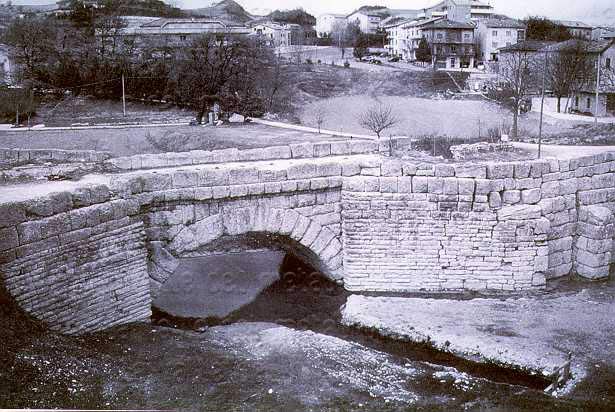 Ponte Grosso nella Gola del Burano, gennaio 1977. E' in via di costruzione la nuova Flaminia