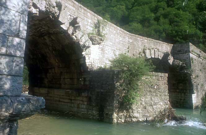 Ponte Grosso nella Gola del Burano (Cantiano), lato verso monte, maggio 2001