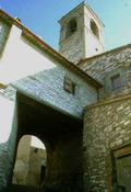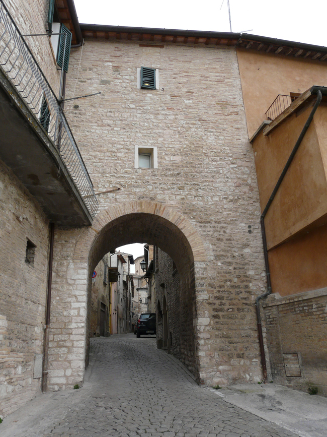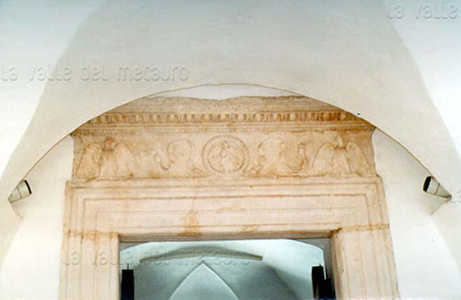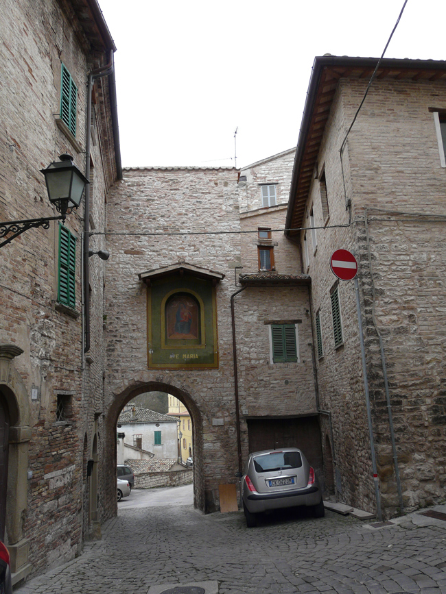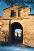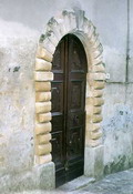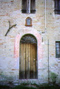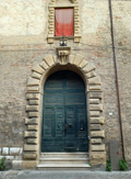 Porta ricavata alla base del campanile della chiesa di S. Giuseppe a Sant'Ippolito, agosto 2007