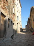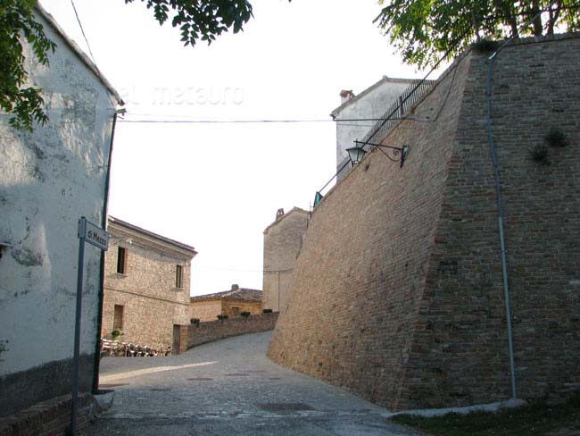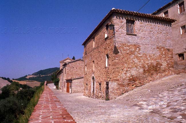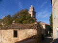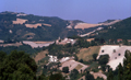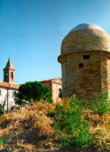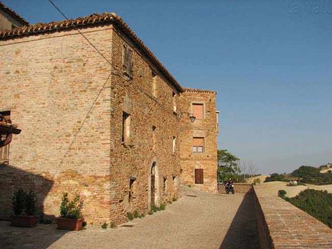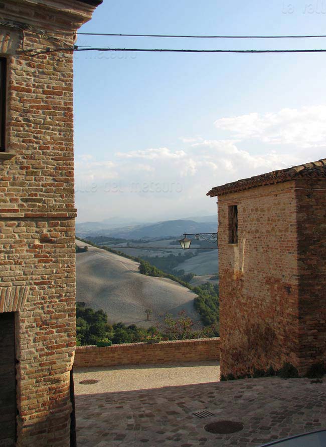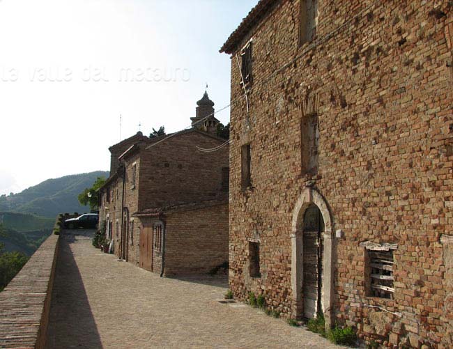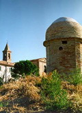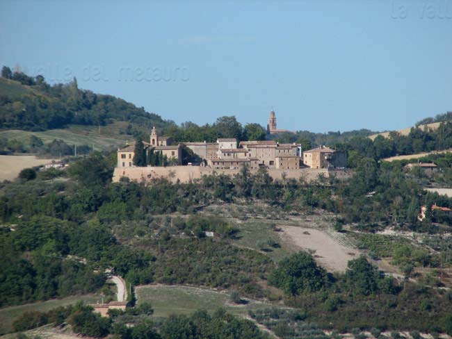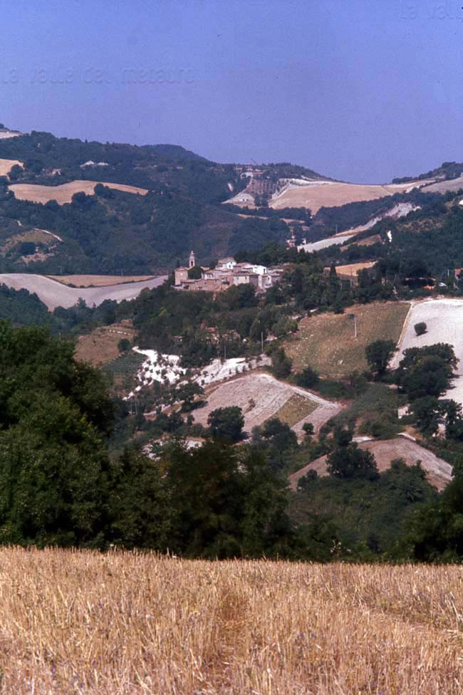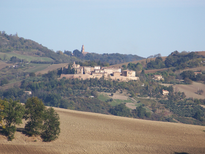 Pozzuolo (Serrungarina) visto da Sud-Ovest, con alle spalle il campanile del Santuario del Beato Sante a Mombaroccio, settembre 2007
