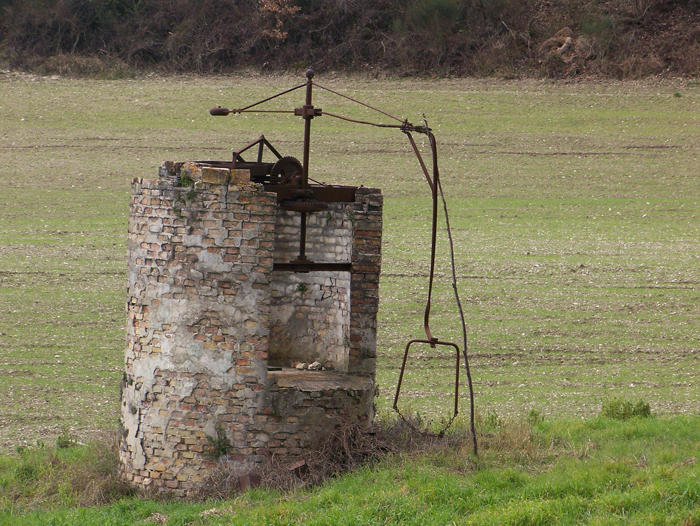 Pozzo con meccanismi per attingere acqua mediante un animale da lavoro, Fossombrone, febbraio 2009
