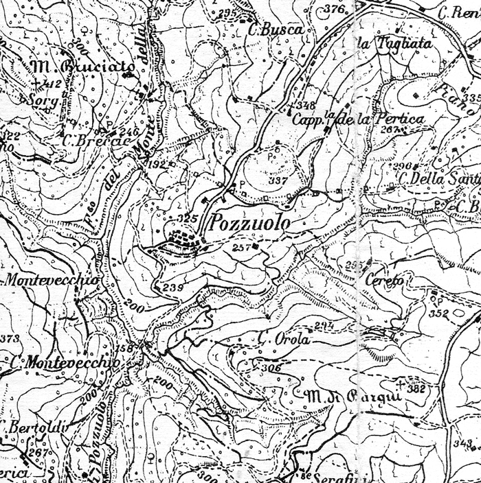 Pozzuolo, Comune di Serrungarina. Carta IGM 1:25.000 109 II N.E., ricogn. generali 1948 (autorizz. IGM n. 4877 del 2-11-1998)