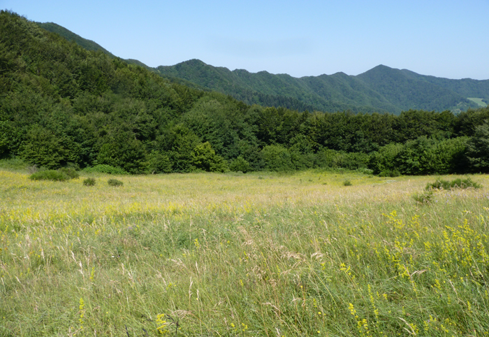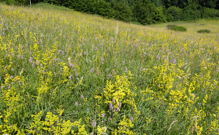 Prateria a Bocca Trabaria, luglio 2011. Si vedono Galium verum e Stachys officinalis