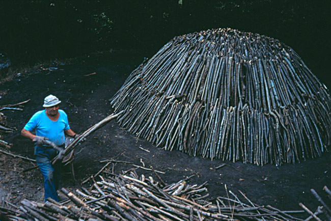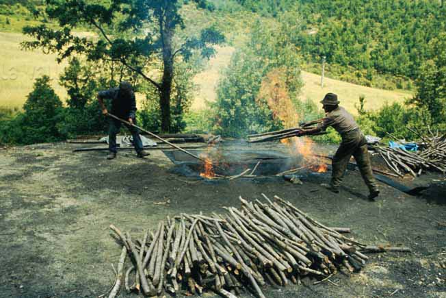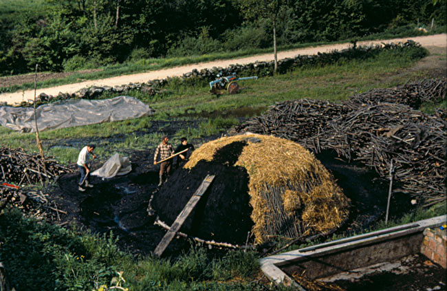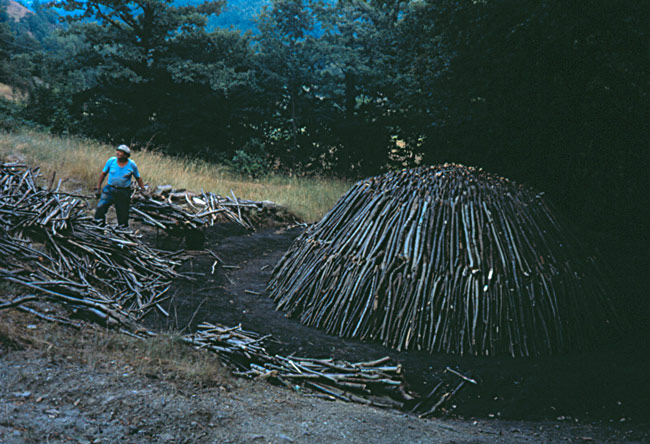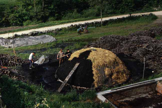 Preparazione della carbonella, dintorni di Parchiule (Borgo Pace), luglio 1984