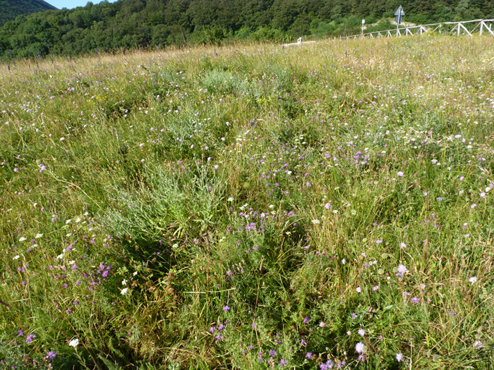 Prateria presso la Casetta del Galante, luglio 2011. Si vedono Bunium bulbocastanum, Centaurea ambigua e Knautia purpurea