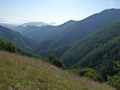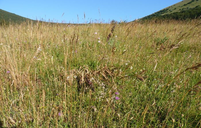 Prateria presso la Casetta del Galante, luglio 2011. Sullo sfondo le pendici settentrionali del M. Acuto con la gola del Fosso del Mandrale