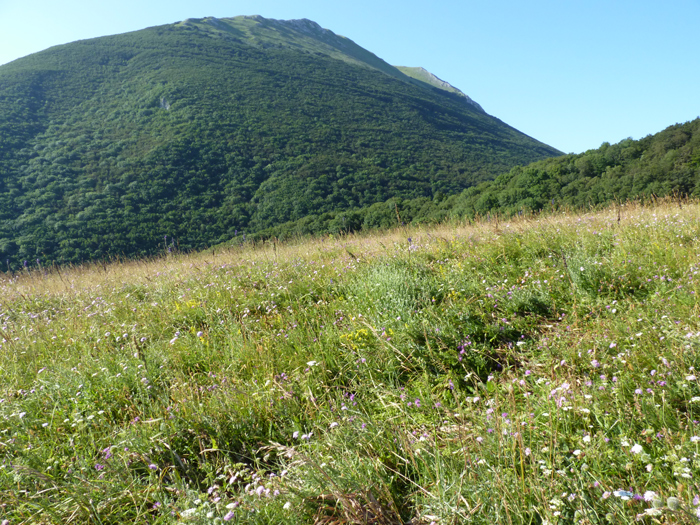 Prateria presso la Casetta del Galante, luglio 2011. Sullo sfondo il M. Acuto