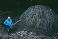 Preparazione di una carbonaia, dintorni di Parchiule (Borgo Pace), maggio 1978