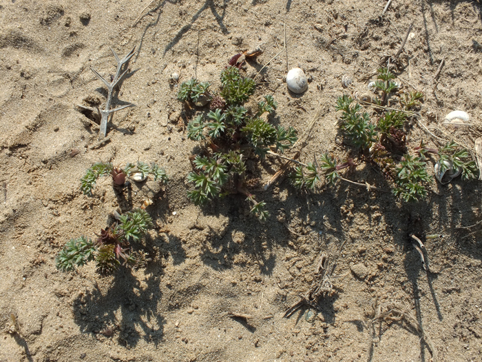 Prime foglie spuntate di Echinophora spinosa, spiaggia di Metaurilia, 15 marzo 2013