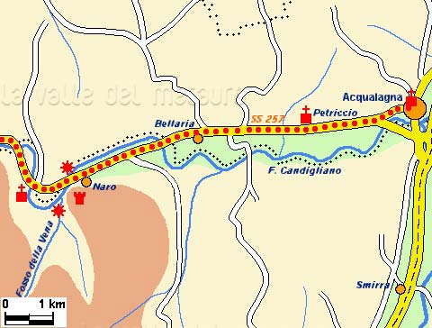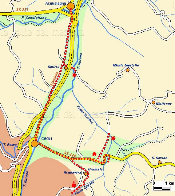 Prima parte dell'itinerario lungo il T. Burano da Acqualagna a Cantiano