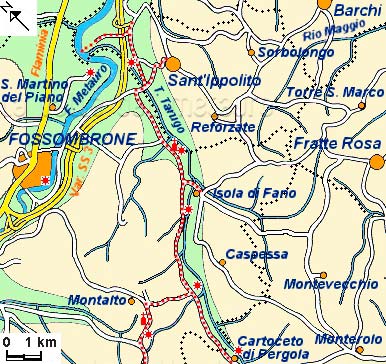 Prima parte dell'itinerario lungo il Candigliano da Acqualagna a S. Martino del Piano