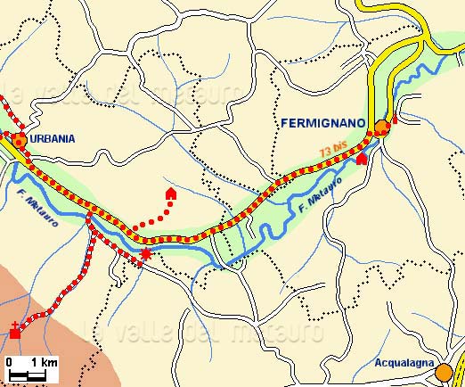Prima parte dell'itinerario lungo il Metauro da Fermignano alla Cascata del Sasso