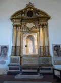Primo altare sulla destra con nicchia che conteneva la statua di S. Antonio da Padova. Chiesa di S. Francesco a Cagli, aprile 2010