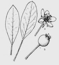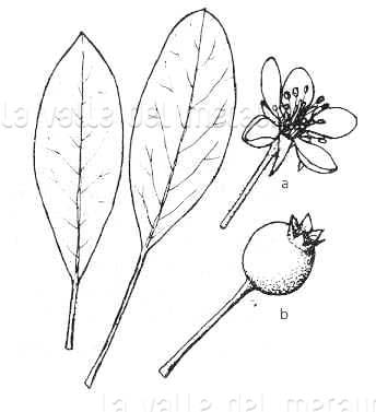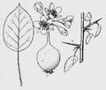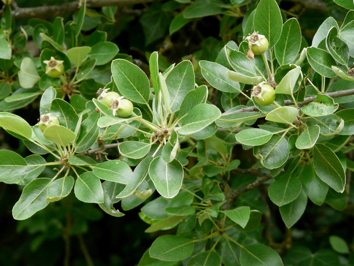 Pyrus amygdaliformis con frutti immaturi, Orto botanico di Casa Archilei a Fano, maggio 2009