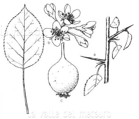 Pyrus communis pyraster, Orto botanico di Casa Archilei a Fano, aprile 2011