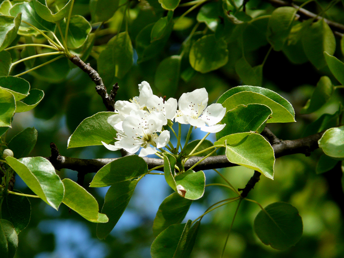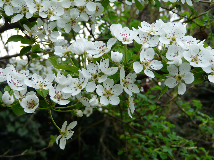 Pyrus communis pyraster in fiore, Orto botanico di Casa Archilei a Fano, aprile 2010