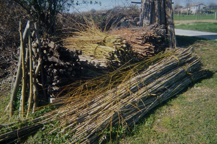 Raccolta di rami di salice (vimini, in dialetto vinch) e canne ad uso agroartigianale, F. Metauro a valle di Calcinelli (Saltara), marzo 2004