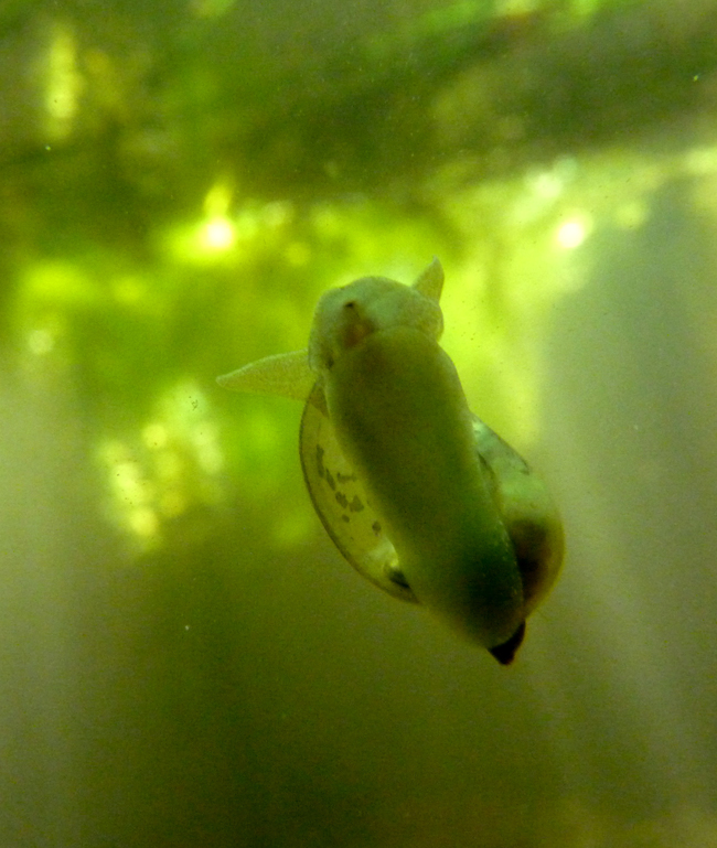 Radix cf. auricularia: a sx e al centro: Metauro a Fano, luglio 2009; a dx: esempl. di 25 mm, Lago Vicini lungo il Metauro a Fano, aprile 2017