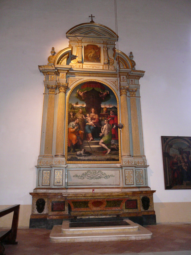 Raffaellino del Colle: Madonna col Bambino e i Santi Rocco, Francesco, Geronzio, Stefano e Sebastiano. Chiesa di S. Francesco a Cagli, marzo 2010