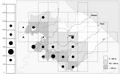 Rana verde - Carta di distribuzione in Provincia di Pesaro e Urbino, 2002. Legenda: cerchio grande = 7 e più rilevazioni dal 1980; cerchio medio = 4-6 rilevazioni; cerchio piccolo = 1-3 rilevazioni; quadrato = dato anteriore al 1980; triangolo = dato fuori dei confini della Provincia. Nel grafico altitudinale: cerchio grande = 15 e più rilevazioni; cerchio medio = 5-14 rilevazioni; cerchio piccolo = 1-4 rilevazioni. Ulteriori notizie nella scheda: Come leggere le schede degli Anfibi