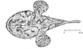 Rana montana. In alto: maschio adulto in periodo riproduttivo, con sfumatura azzurro-grigiastra a livello della gola, Foreste Casentinesi (FC), marzo 2013 (foto L. Coppari), in basso: girino, Dolomiti a 2300 m di quota in una pozza, luglio 2020 (foto V. Dionisi)