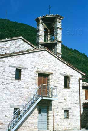 Retro della Chiesa di Pietralata (Monti del Furlo), 2001. E' anche visibile un lavatoio e l'adiacente casa canonica