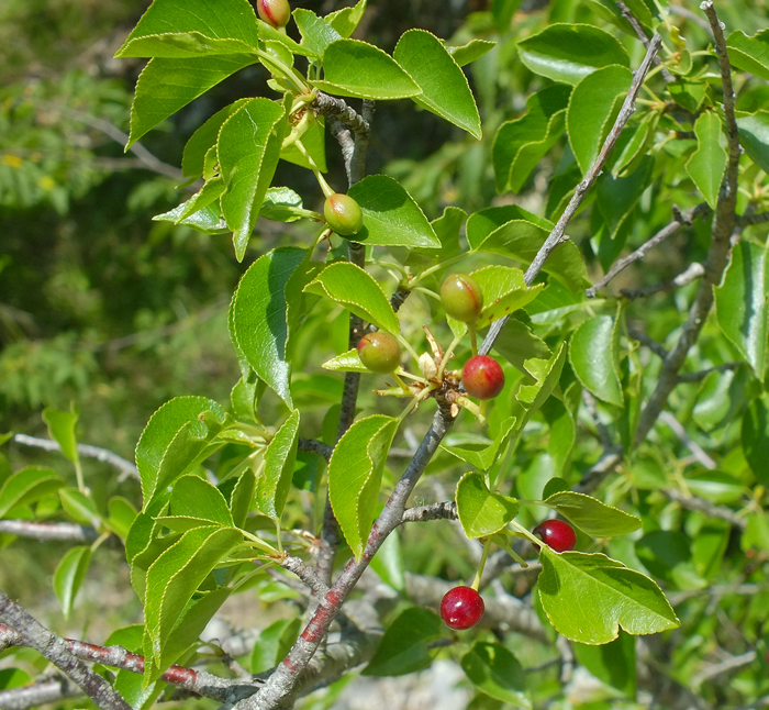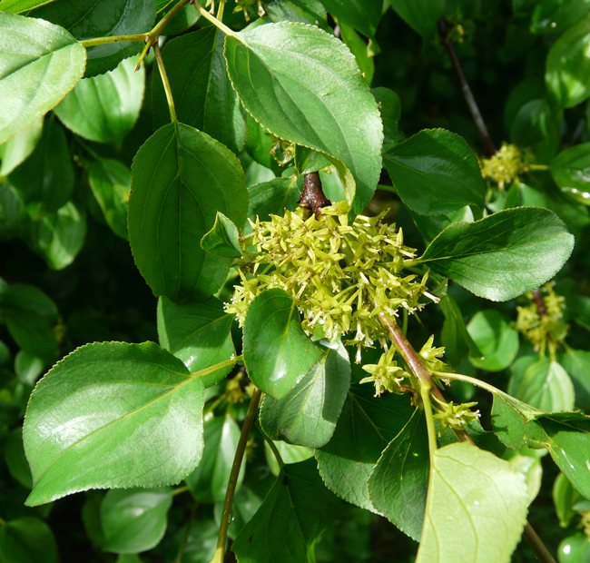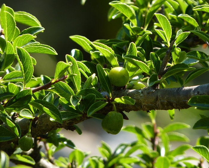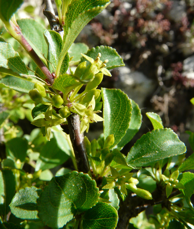 Rhamnus saxatilis con frutti immaturi, Centro Ricerche Floristiche Marche a Pesaro, giugno 2010