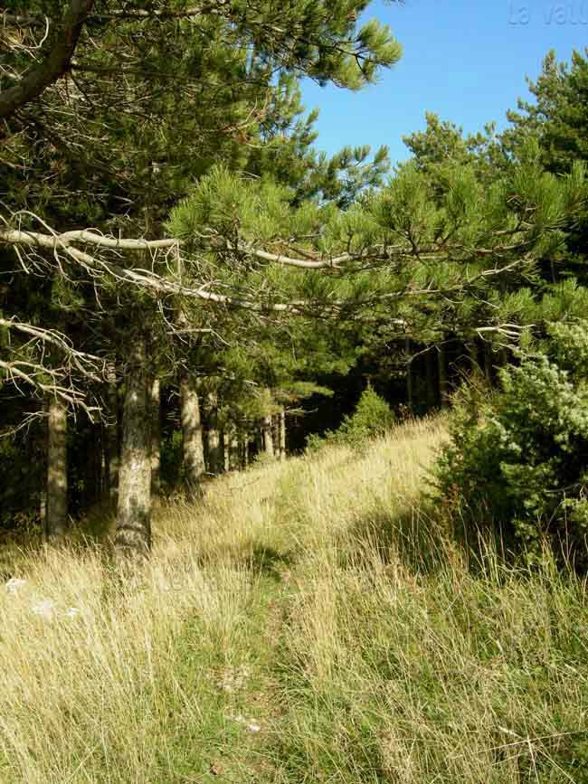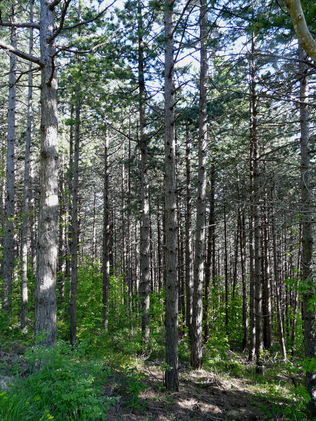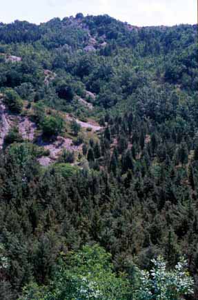 Rimboschimento a pini nella parte finale del sentiero 151, M. Pietralata (Monti del Furlo), dicembre 2006