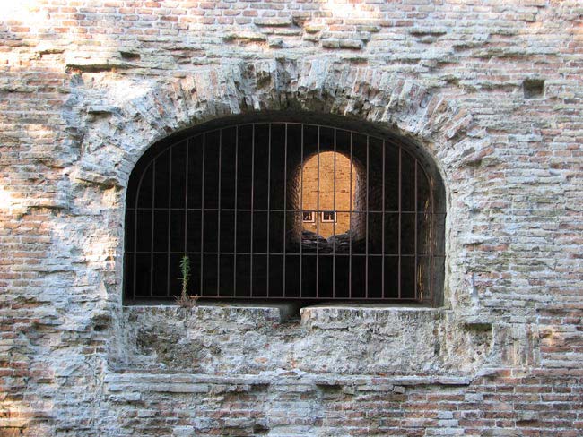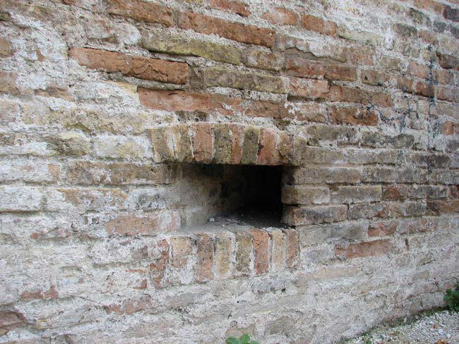 Bastione Sangallo a Fano: archibugiera sul lato di Sud-Ovest a cui si accede dalla galleria di scarpa, agosto 2007