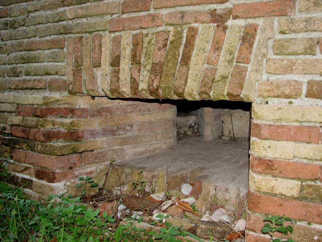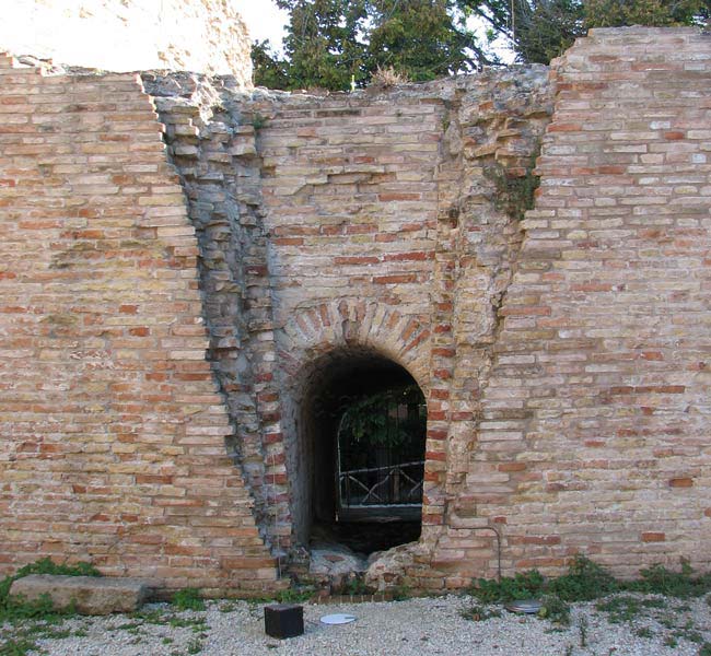 Bastione Sangallo a Fano: cortile della piazza bassa a monte, ingresso alla postazione per cannoni, agosto 2007